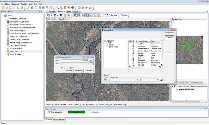 The 2019 Geographic Calculator features a universal copy and paste function, a new angular unit conversion tool, support for NADCON 5.0 and updated seismic survey conversion functionality. The foundation of the calculator’s geodetic data-processing functionality is the embedded GeoCalc datasource, which is continually revised and improved with updates through the online GeoCalc Geodetic Registry. The datasource included in the 2019 release mirrors the most current EPSG database definitions. The calculator’s copy and paste function can be used to quickly capture data for use in a third-party application or to insert new coordinate values in an existing job.