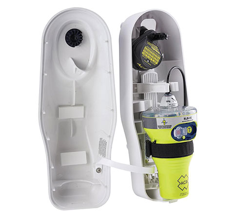 The ACR 2830 GlobalFix V4 EPIRB marine distress beacon has multiple built-in redundancies to increase chances of survival in an emergency situation. The internal GPS receiver pinpoints the user’s location, which is then transmitted on the 406-MHz distress signal. In the absence of GPS-derived coordinates, the signal can be used to triangulate the position. The beacon’s 121.5 MHz homing signal will bring local search-and-rescue forces directly to the position; an LED strobe light allows them to see the position in low light. A Category 1 Emergency Position Indicating Radio Beacon (EPIRB), the GlobalFix V4 is a float-free device that will automatically activate when submerged in water. Two self-tests monitor transmission, power and battery performance as well as GPS acquisition.
