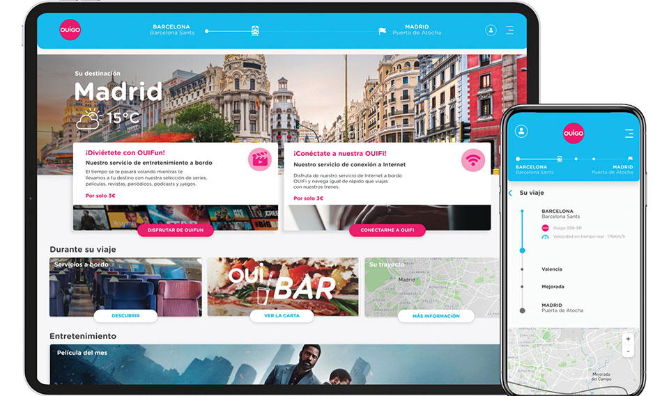 A new connected platform for rail passengers with Wi-Fi, information and entertainment content is being installed on OUIGO Spain trains through the OUIFUN portal. Passengers can connect via smartphones, tablets or PCs, access the internet on board to check email or browse the web, and enjoy entertainment content. Passengers also will be able to get travel status information in real time via an interactive map, access tourist guides or consult a menu for on-board catering. The service, provided by Moment, launched on May 10 on OUIGO’s first high-speed line in Spain connecting Madrid to Barcelona, and will gradually be extended to the whole high-speed OUIGO network.