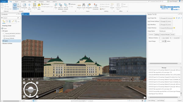 The 3D Environments Add-In application for Esri ArcGIS Pro allows ArcGIS users to rapidly transform 3D Tiles Next data formats, such as One World Terrain, into ArcGIS Pro projects to create 3D scenes from 2D vector data and 3D models. The add-in leverages Presagis’ building templates and texture libraries that analysts use to create enhanced 3D visualizations of GIS environments, helping increase collaboration across the enterprise. The 3D Environments Add-In contains tools to create, transform and extract a wide variety of 3D formats to provide seamless interoperability between ArcGIS Pro and modeling and simulation applications. It is available on the Esri ArcGIS Marketplace.