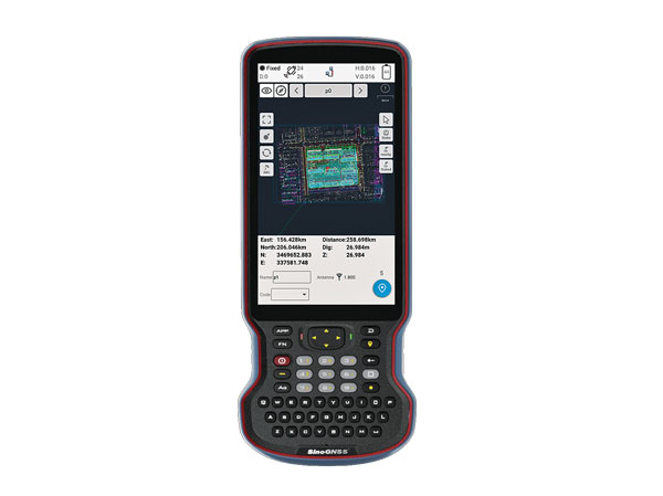 The R60 is a powerful handheld with an ergonomic design. It runs on Android 12 OS, providing a suitable workhorse for surveying professionals in the field. Survey Master field software works seamlessly on the R60, which features a Qualcomm 8-core processor for massive data processing. Its 64-GB memory allows ample data storage and enables the opening of CAD drawings in seconds. Other features include a QWERTY keyboard, a 5.5-inch sunlight-readable high-resolution screen, an IP67 rating (dustproof and waterproof), and a 9,000 mA Li-ion battery for more than 30 hours of continuous functioning.