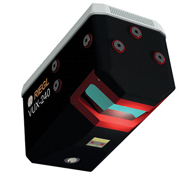 The RIEGL VUX-240 is a lightweight airborne laser scanner, especially designed for use on UAS/UAV/RPAS and small manned airplanes or helicopters. With its wide field of view of 75° and a data acquisition rate of up to 1.8 MHz, the instrument is suitable for high-point-density corridor mapping applications. The VUX-240 uses Riegl’s Waveform-Lidar technology, allowing echo digitization and online waveform processing. Multi-target resolution is the basis for penetrating even dense foliage. A continuously rotating polygon mirror wheel enables scan speeds of up to 400 lines per second, for efficiently covering large areas when operated from fast UAVs or aircrafts. The scanner stores 1 terabyte of data internally and is equipped with interfaces for an external IMU/GNSS system to control up to four external cameras.
