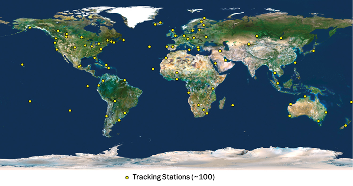 The CenterPoint RTX tracking network currently consists of around 100 stations, distributed across the globe, as shown in Figure 2. The CenterPoint RTX service is currently offered in North and South America, via satellite link, as indicated in Figure 3. Today the CenterPoint RTX service has been made available globally for all those with Internet access.