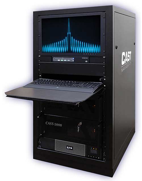 Innovation. CAST’s latest simulator is the CAST 5000 wavefront generator. It allows users to drive GNSS and interference signals that represent a continuous radiation pattern antenna (CRPA), which consists of multiple, smaller antennas all combined into one unit. In real life, each one of those antenna elements is in a different location; therefore, when they receive signals from a jammer or any of the GNSS satellites, each one will see that signal in a slightly different phase from the other elements. “Our simulator allows us to present signals to these antennas that model the same type of phase differentiation that you see in real life,” Clark said.