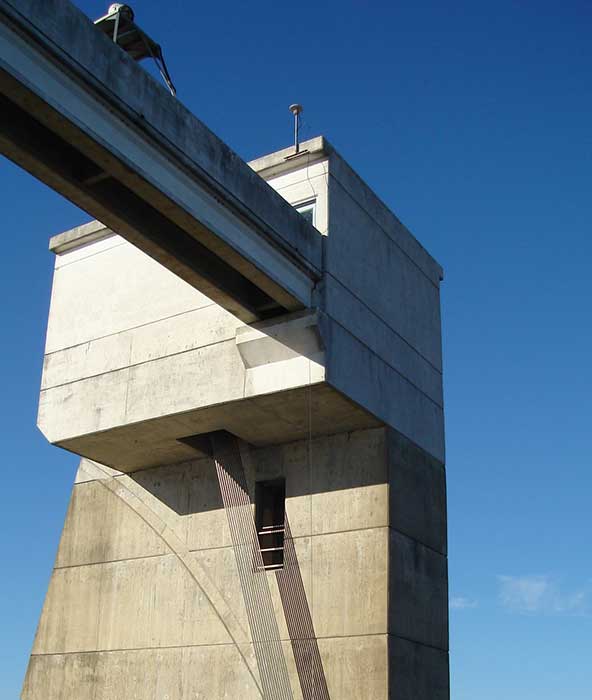 In Long Beach, California, correction services support the 250-foot-high Gerald Desmond Bridge project. Trevor Rice (left), president of D. Woolley & Associates, joins Kimberley Holtz, director of survey, Port of Long Beach. (Photo: Trimble)