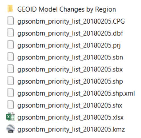 The attached file includes the list of stations that NGS would like observed to support the next geoid model. The information is provided in three different formats — excel spreadsheet, esri shapefile, and Google Earth kmz (See the box titled “List of Files for the 2018 GPS on BMs Program.”)
