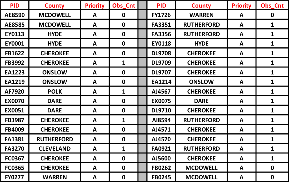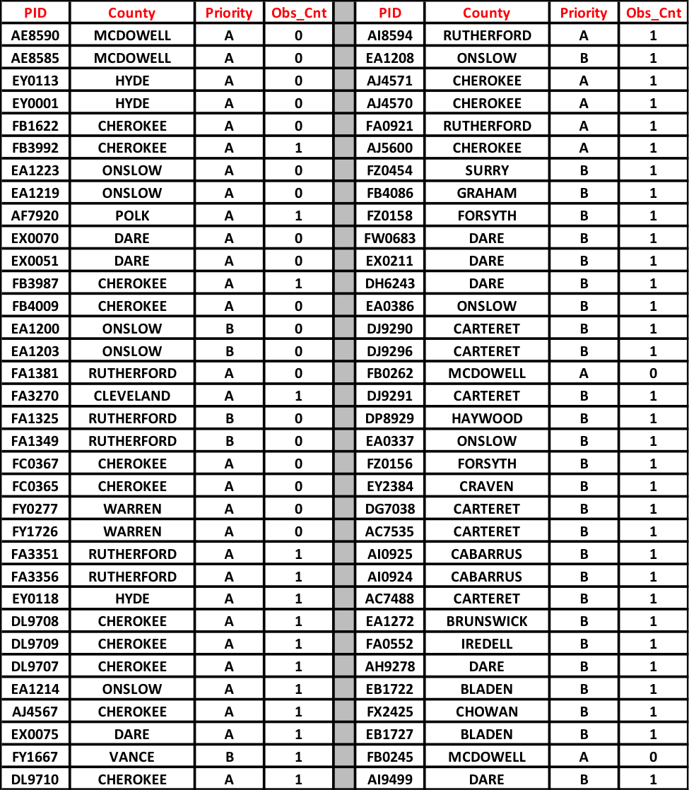 List of PIDs of Priority “A” and “B” Stations in North Carolina That Need to be Observed