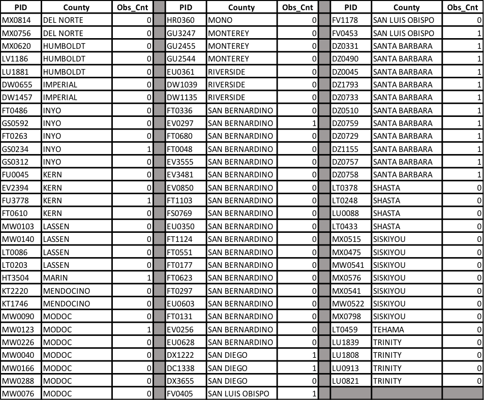 It should be noted that NGS identified the priority stations based on hybrid geoid requirements. The NGS geoid team would desire a valid GPS on BMs observation every 30 km. Therefore, some of the priority A stations are in areas void of any GPS on BMs stations. There may be many reasons for this but, most likely, it’s because it’s located in an unpopulated or mountainous region of the county. Either way, it may be difficult to obtain observations at these stations. The new hybrid geoid model will be created using whatever data are available. In these void areas, the geoid will be controlled by the nearest GPS on BMs stations. There is nothing wrong with this approach. The only issue will be that it will not be possible to evaluate the relation of the hybrid geoid model and NAVD 88 in these void areas. Figure 7 depicts the priority A stations and the population of cities in Northwestern Nevada and Northeastern California. The figure indicates that these priority A stations are located in an unpopulated region of Nevada. It’s obvious why there’s no GPS on BMs in this region since nobody lives there but the geoid doesn’t depend on population. In any event, if the user can obtain an observation in these regions it will really help in creating an accurate hybrid geoid model.