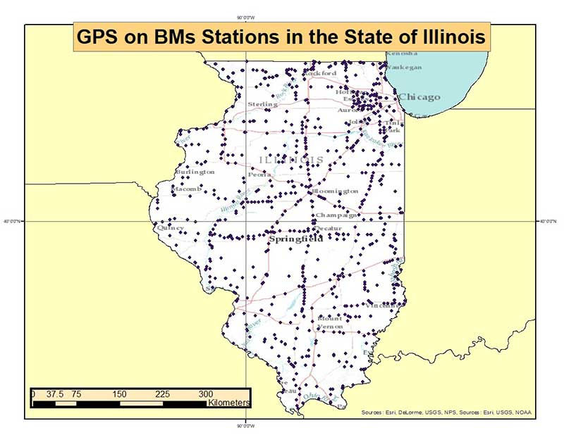 Figure 8 – GPS on BMs Stations in the State of Illinois.