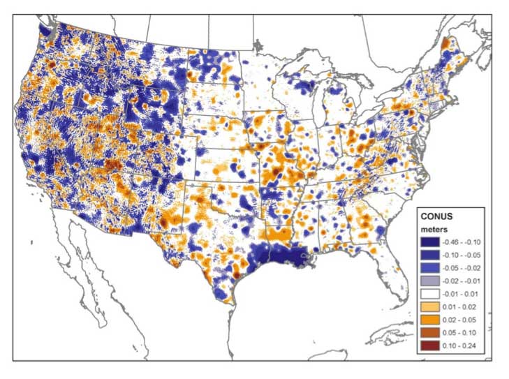 The image below shows the changes between GEOID12B and the prototype hybrid geoid model. While data is needed on all the marks in the list, you may further focus your data collection efforts by looking for areas in this image that show large changes in your region.
