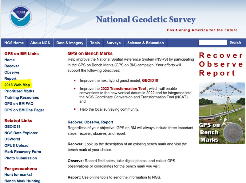 First, NGS has a web page dedicated to the 2018 GPS on BMs program. See the box titled “GPS on Bench Marks Web Page.”