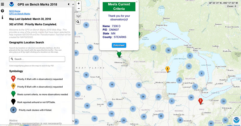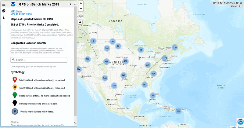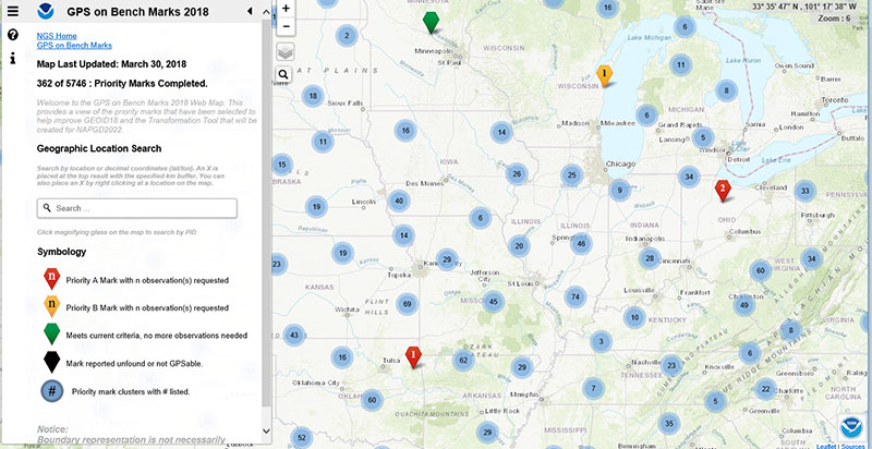 This column will describe NGS’ GPS on BMs 2018 interactive web map and provide an update and status report on stations observed in support of the 2018 GPS on BMs Program.