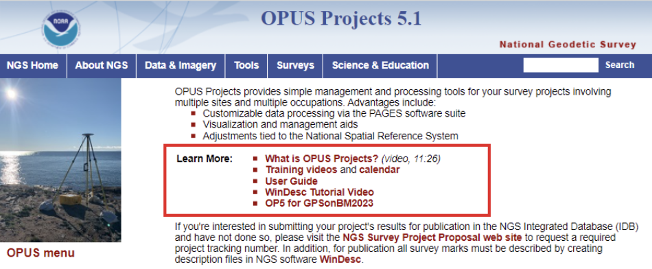 • OPUS -Projects 5: supporting RTK for establishment of geodetic control