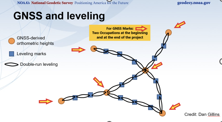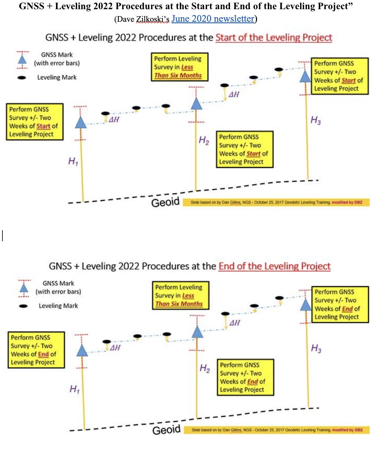 GNSS + Leveling 2022 Procedures at the Start and End of the Leveling Project”. (Image: Diagram based on information from Dan Gillins, NGS, and modified by David B. Zilkoski)