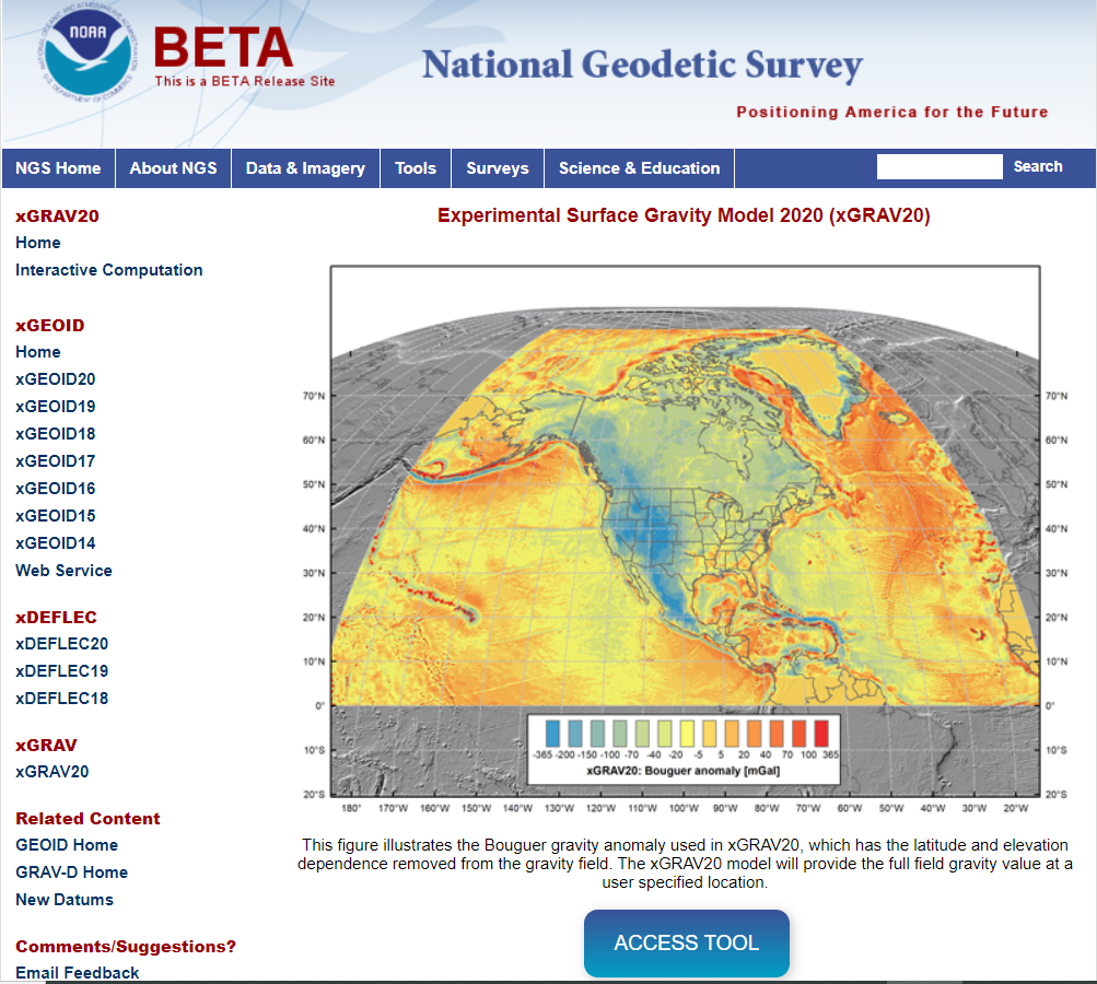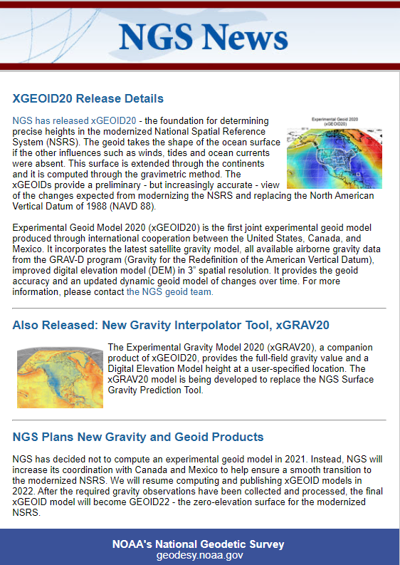 The last item that I’d like to highlight is that NGS has released a beta version of a surface gravity model consistent with xGEOID20. See the box titled “Experimental Surface Gravity Model 2020 (xGRAV20).” Users can access the beta webtool here.