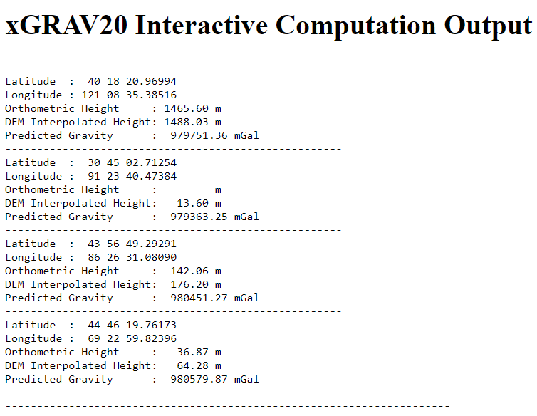 xGEOID20 Interactive Computation Output