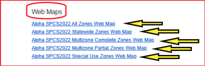 To access the online map function, users need to click one of the Alpha SPCS2022 zone options.
