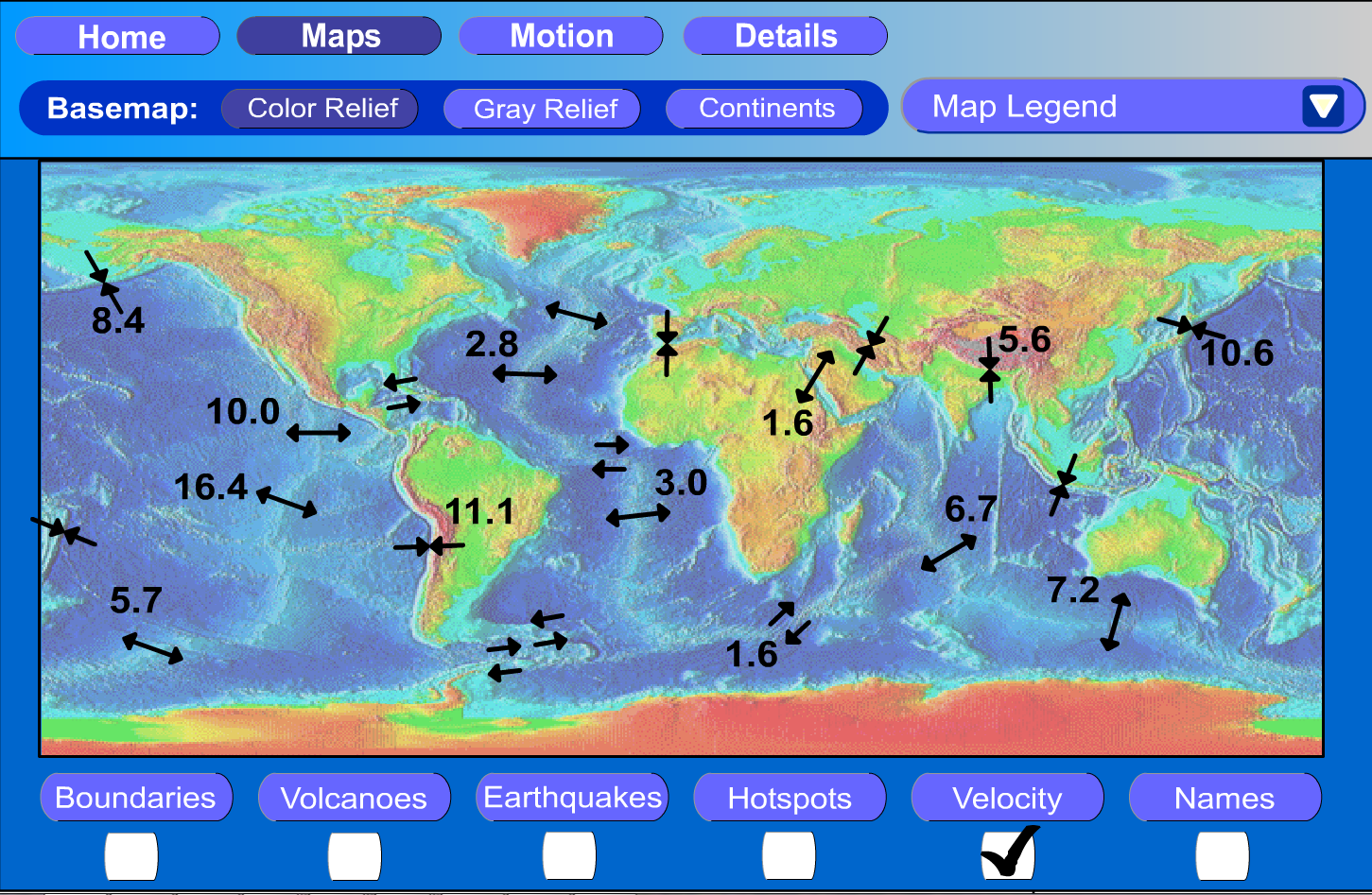 To illustrate the effect of tectonic plate velocities, please view the following two images: