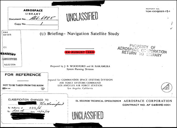 We call this a tribute to the almost-forgotten people whose intellectual labor and skill initially developed GPS. As we unveil this story, we will point out the original — and critical — system study, the 1966 Woodford/Nakamura Report, that became the essential blueprint for GPS. Many people are unaware of this study since, in its original form, it was classified U.S. Department of Defense (DoD) Secret. It was not declassified until August 1979, more than a year after the first launch of a GPS operational satellite in February 1978.