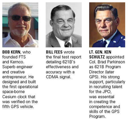 By 1972, program 621B had successfully proven the effectiveness and accuracy of the CDMA signal by demonstrating that such a configuration would achieve 5-meter, 3-dimensional navigation accuracy. Much credit for the painstaking analysis of these results should go to Bill Fees of Aerospace who wrote the final detailed test report. These test results answered most of the remaining issues regarding the CDMA signal.