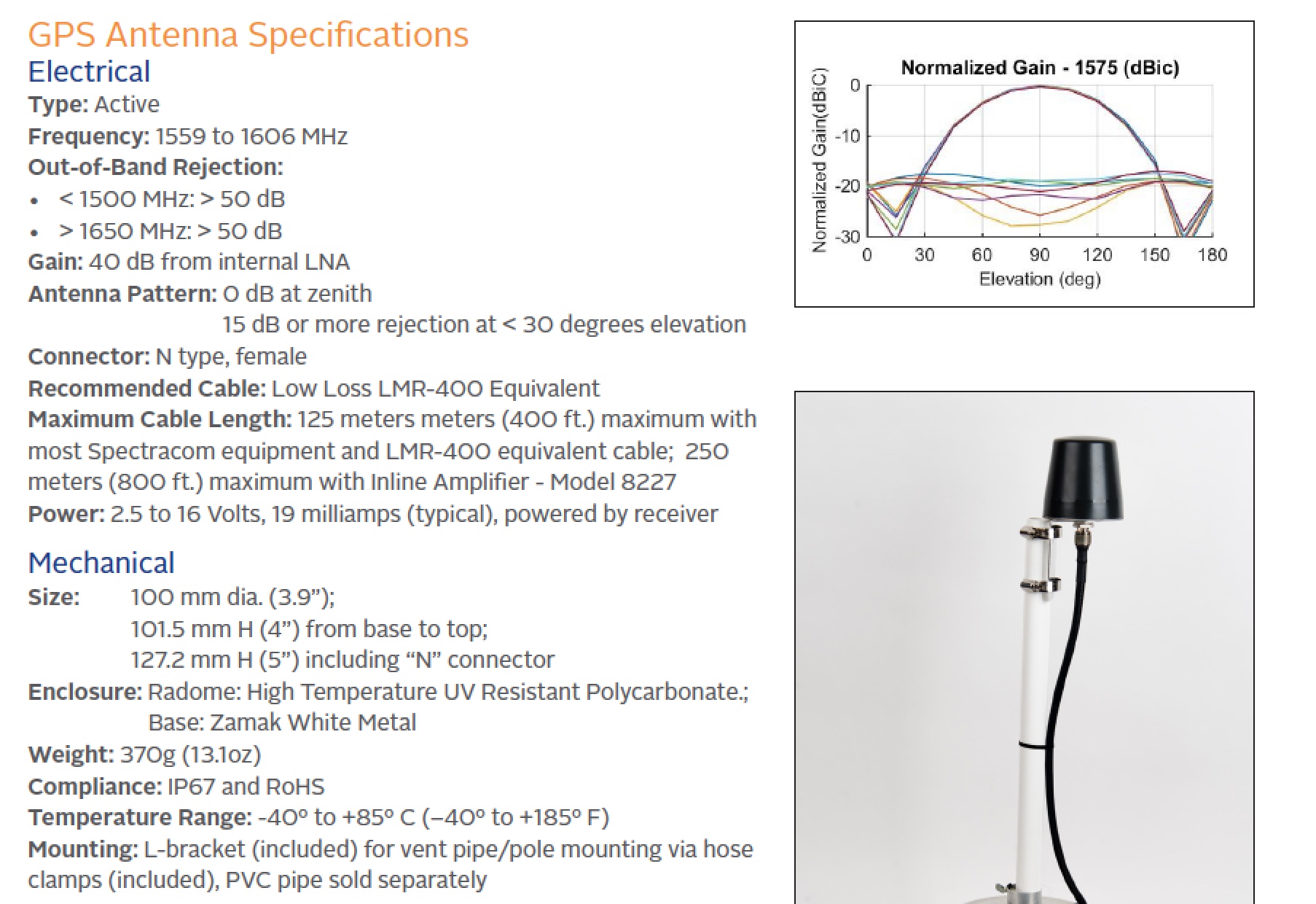“Model 8230AJ is a high gain (40 dB) GNSS outdoor antenna covering GPS L1, GLONASS L1, BeiDou B1, Galileo E1, and QZSS L1,” said David Sohn, product manager at Spectracom. “It uses a three-stage low noise amplifier, a mid-section SAW, and a tight pre-filter to protect against saturation by high level sub-harmonics and L-band signals. It is designed especially for harsh environments, is IP67 rated, and improves resilience and protects against jamming and spoofing.”