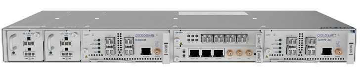 Featuring the OSA 3230B ePRC atomic cesium clock connected to an Oscilloquartz clock combiner and grandmaster, the new solution offers the extremely stable frequency of a cesium clock with the UTC-traceable signal provided by GNSS.