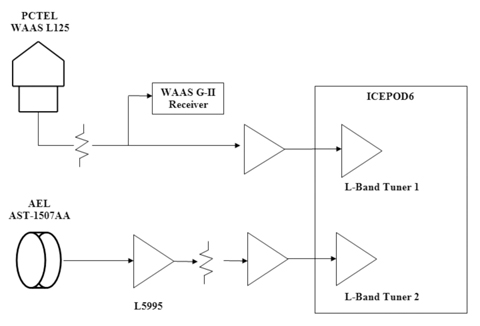 The AEL antenna is connected to a filter/low noise amplifier (LNA) (Delta Microwave L5995) identical to those within the PCTEL antenna, before it is connected to one of the two L-band tuners (900 to 2200 MHz) of the ICE-Online ICEPOD6-M5, which includes 1 TB of long-term storage and 8 GB of high-speed RAM and is capable of sustained data transfers of as high as 400 MB/s between the L-band tuners and disk. Sample rates and RF filtering are programmable and have been set to use a complex sample rate of 40 MSPS and an RF bandwidth of 30 MHz. When RFI is present, data transfers are 320 MB/s. The internal 1 TB disk can store approximately 100 minutes of RFI. Software parameters limit RFI data capture for any single event to no more than 90 seconds. Implementation of a circular buffer within the high-speed RAM (8 seconds for each L-band tuner path) allows continuous capture of RF data while waiting for a trigger indicating that RFI is present. To reduce false alarms, RFI must be present for at least 4 seconds before data is captured. However, no RFI data is lost, because the circular buffer is longer than 4 seconds. RFI data captures typically contain 3 seconds of data at the beginning, with no RFI, and therefore make it possible to observe the onset of the RFI.