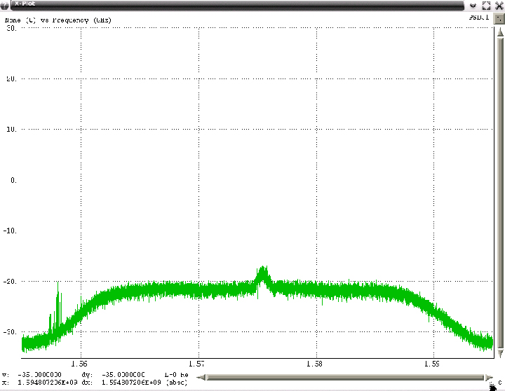 Some of these PPDs were transmitting at power levels (observed by the PCTEL antenna) as much as 40 dB above the LNA noise floor. Most spectra were not centered symmetrically about L1 with some completely outside the mainlobe of the GPS C/A code. A few were transmitting outside the programmed 40 MHz bandwidth of the Snapshot System (1555 to 1595 MHz). For those PPDs transmitting outside this band, estimates were made of the upper or lower frequencies using the linear slope of the FM demodulated data, and then extrapolating that slope based on the chirp interval.