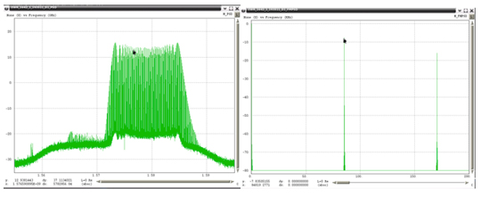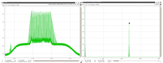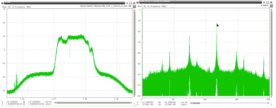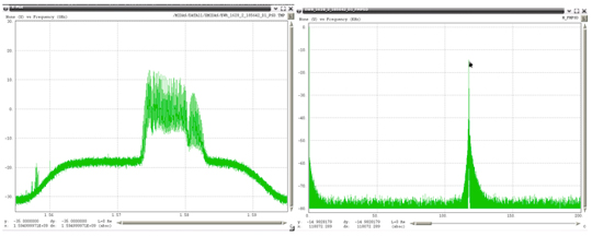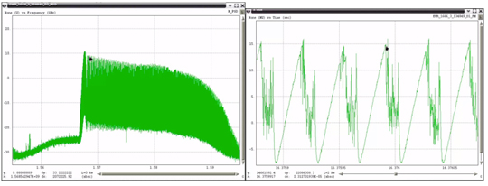 Two of the captured broadband RFI events were demodulated and analyzed. The underlying linear frequency modulation (FM) signal swept over more than 15 MHz in less than 1 millisecond (Figure 2).