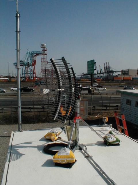 The Snapshot System RF input for this deployment was from a PCTEL antenna identical to those used at WAAS reference sites. This antenna incorporates a triplexer that provides three separate 40 MHz passbands each centered on L1, L2, and L5, with approximately 50 dB of gain. This antenna was located approximately one mile north of the four LAAS antennas within Port Authority of New York and New Jersey (PANYNJ) Building 80.