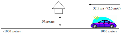Once it was realized that the RFI was from low power moving emitters, a simple model was used to predict their degradation effect on WAAS GPS receivers. The model shown in Figure 9 was used for the purpose of computing distance between the RFI emitter and a WAAS antenna and to then compute the additional level of interference noise power that the WAAS antenna would receive. Here, the WAAS PCTEL antenna is located 50 meters from a road that is 2000 meters long and straight and has an RFI emitter transmitting +25 dBm, moving at 32.5 meters per second (72.5 mph) and with clear line of sight to the WAAS antenna.