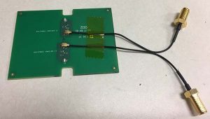 To attempt to model what may be possible with a phone based on a next-generation chipset, a cell-phone equivalent antenna provided by Broadcom was used in some of the tests with the development system, as shown in Figure 12. This device has separate feeds for L1 and L5.