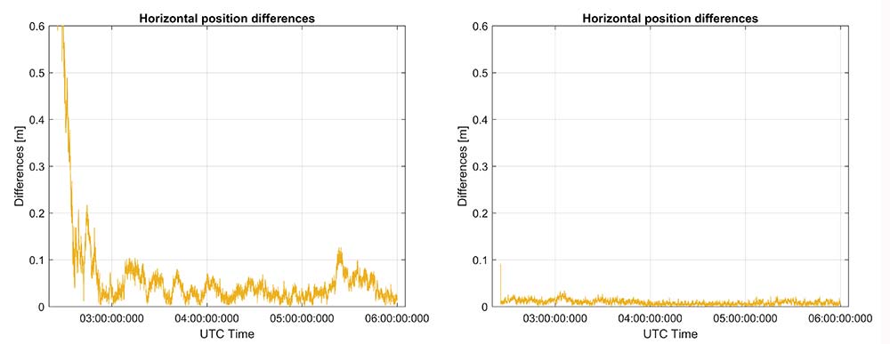The same datasets were also processed with RTX-Fast in California. Thus the base station data was replaced by a global/regional correction stream received from an internet-based data source (Figure 16).