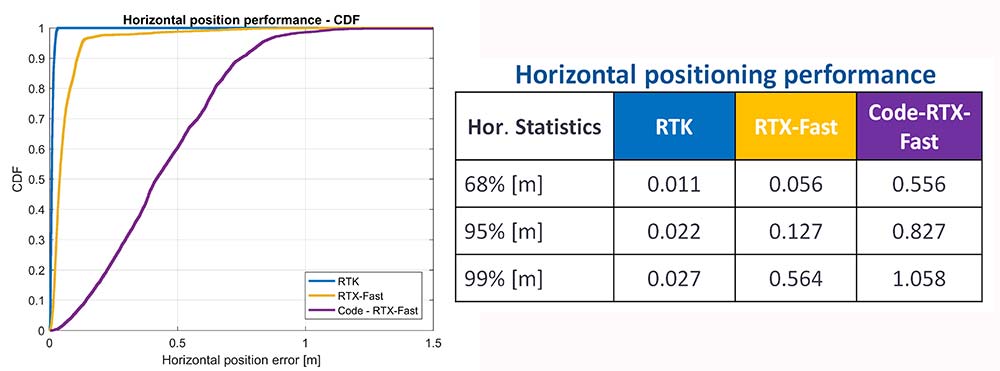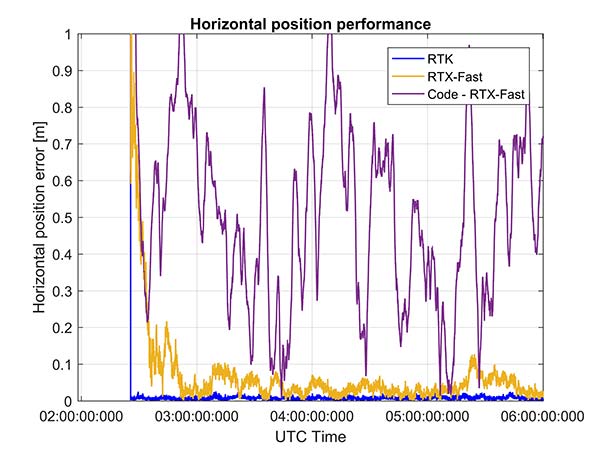 The code position solution using the RTX correction stream provides sub-meter positioning (Figure 18).