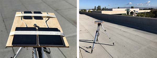 An accurate vector between the two references points was computed and used as truth in a double-difference residual analysis. Even though we do not know the precise location of the phase center of the antenna, because the difference was performed between two devices that are the same model and have the same orientation the error in the phase center location is common and will cancel. Various pairs of devices were tested by being mounted on a wooden board on a tripod at approximately waist height. The test configuration is shown in Figure 4.