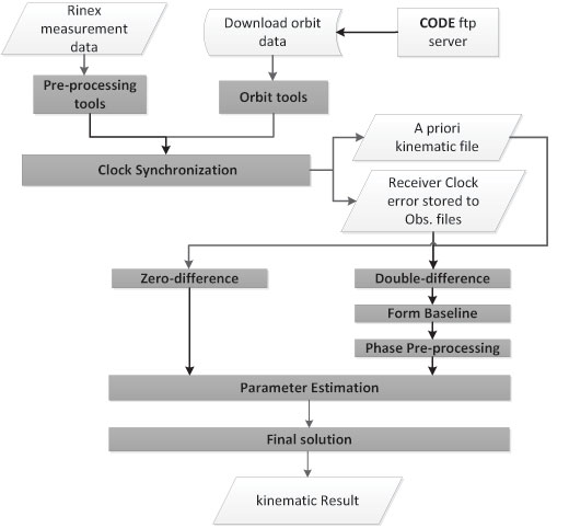 Bernese software contains a group of different tools or programs to complete the processing for double-difference or zero-difference mode. The estimation of the two techniques has the same processing schedule in most of the pre-processing stages. The change appears later within the parameter estimations section.