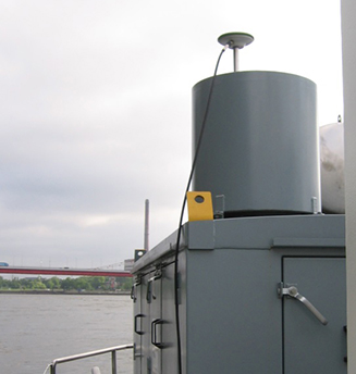 An antenna and a receiver were mounted on the surveying vessel (inset photo, opener) to collect the GNSS data with an interval of 1 second during two days. The virtual SAPOS (SAtellitenPOSitionierungsdienst der deutschen Landesvermessung) reference station was considered as a reference station, provided from the SAPOS-NRW team. SAPOS is a continuously operating reference station (CORS) GNSS service collecting data throughout Germany.