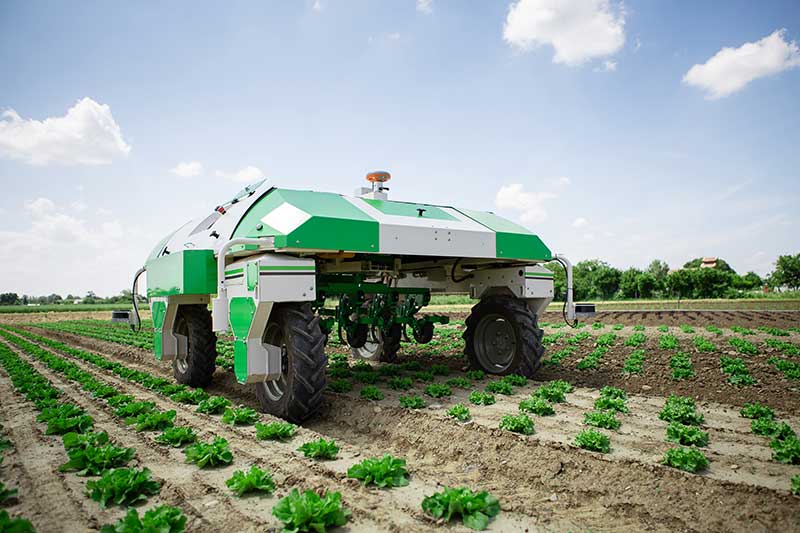The vegetable weeding robot Dino — shown here operating in Yuma, Arizona — uses a Septentrio GNSS receiver. (Photo: Septentrio/Naio Technologies)