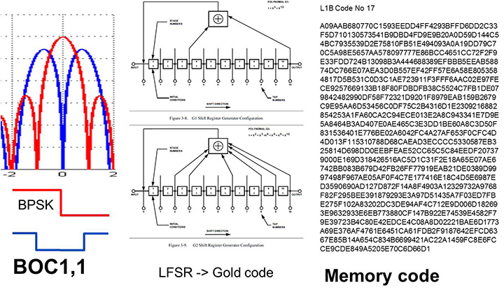 The changed characteristics in Galileo that drove hardware upgrades are shown in Figure 1. The binary offset carrier BOC(1,1) modulation stretches the bandwidth, affecting the RF, while both the BOC and the memory codes affect the baseband silicon in the code-generator area.