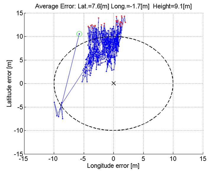 Good accuracy is not expected from Galileo at this stage. The four satellites, while orbited to give good common visibility, do not also give a good DOP; the full set of ground monitoring stations is not yet implemented and cannot be well calibrated with such a small constellation. Finally, the ionospheric correction data is not yet available. Despite these problems, the residuals on the solutions, against a known fixed position for the rooftop antenna, are very respectable, shown in Figure 13.
