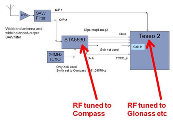 Figure 2. Teseo-2 RF hardware changes for GLONASS.