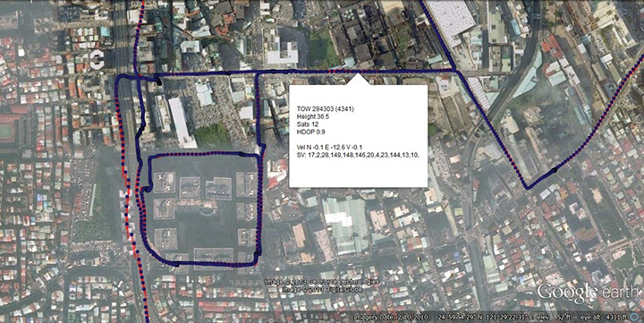 Figure 9. GPS + Beidou roadtrack in Taipei.