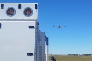 A single-engine plane lands with the aid of a compact, Raytheon-made low-power radar during a flight-check demonstration for the U.S. government. (Photo: Raytheon)
