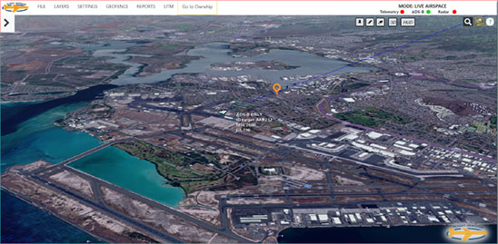 FlightHorizon COMMANDER includes a 3D moving map display for air traffic situational awareness, air navigation charts, weather data, special features for the tracking and safety of uncrewed aircraft systems (UAS) and automatic detect-and-avoid functions.