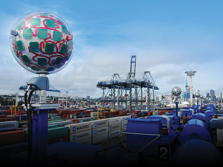 Positioning, navigation and timing (PNT) orbs guide 50-ton robots carrying containers at the Ports of Auckland.