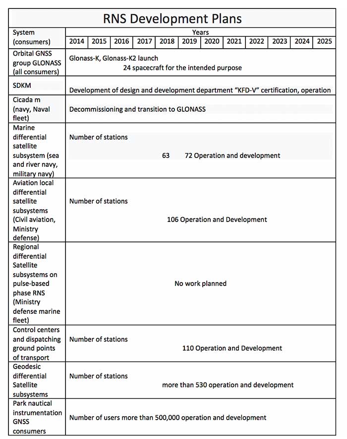 “Integration of terrestrial and space RNS will allow creating separate navigation areas superior in technical the characteristics of each of its constituent systems…One of the ways to integrate ground and space RNS is integration of systems like “Seagull” [Loran] and GLONASS. Integrated systems “Seagull” / GLONASS may in the future used as the main systems for route stages navigation.”