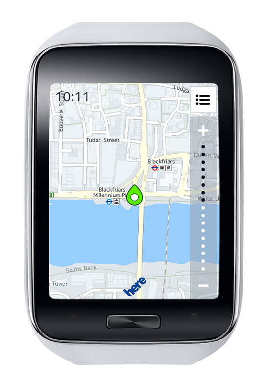 It also provides standalone features such as turn-by-turn pedestrian navigation provided by HERE. Health and fitness features include enhanced multi-sensors, built-in GPS, robust S Health features and applications like Nike+ Running so users can track their runs while leaving their smartphone at home.