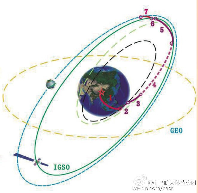 UPDATE (3/31/15): The BeiDou satellite is being targeted for an IGSO orbit, not a MEO orbit as previously speculated. The two images below make this clear.