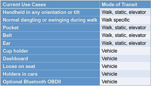 The constraints are also tailored to the user’s mode of transit to ensure the most robust solution for the user. Mode of transit is automatically detected on a continuous basis.
