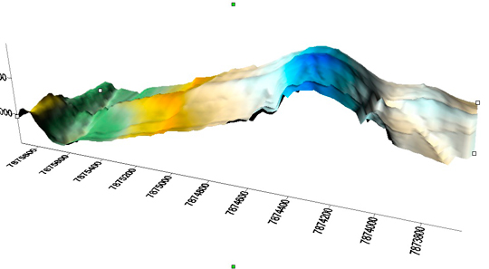 A U.S. Army air raid shelter under the officer’s accommodation camp, mapped with GPS and magnetometer data and using Surfer 3D surface mapping software.